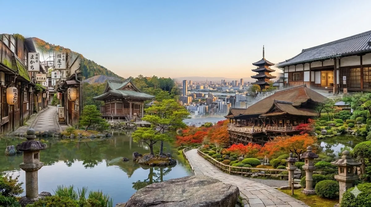 The morning mist slowly lifts as the first sunlight touches the wooden gates of an ancient temple. A soft bell rings in the distance, and the scent of incense drifts through the air. Walking through Kyoto feels like stepping into another era — narrow stone streets, women dressed in colorful kimonos, and centuries-old shrines quietly standing beneath towering maple trees.